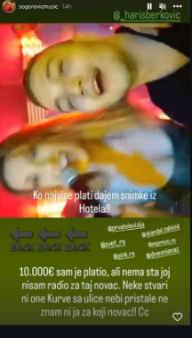 „Беше и со мене, а ѝ платив 10.000 евра за една вечер во хотел“, рече Дарио кој ја обвини Рада дека често го изневерувала Харис и вети дека една од снимките ќе ја објави на порно сајт.