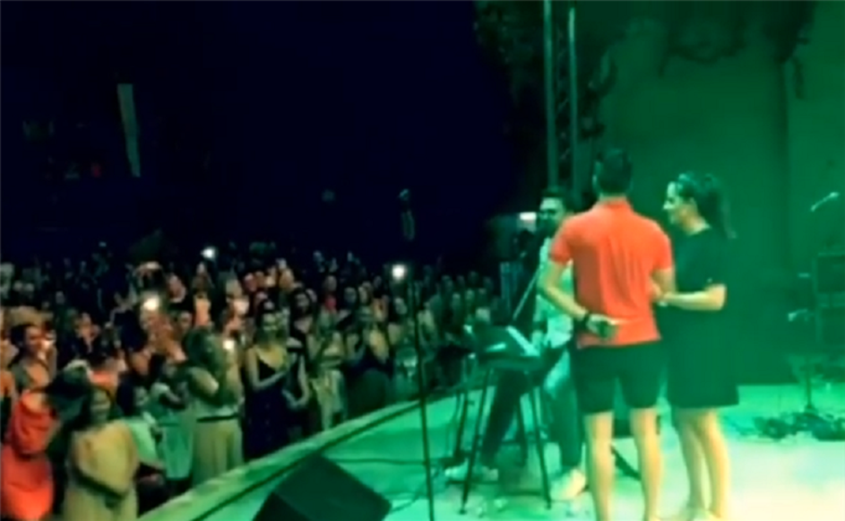 Додека момчето Петар клекнат на колена со прстенот в рака се обиде да го постави прашањето, публиката воодушевено скандира. Неговата девојка се вика Даниела (сто како и љубовта на Грашо) која со солзи во очите одговори потврдно.