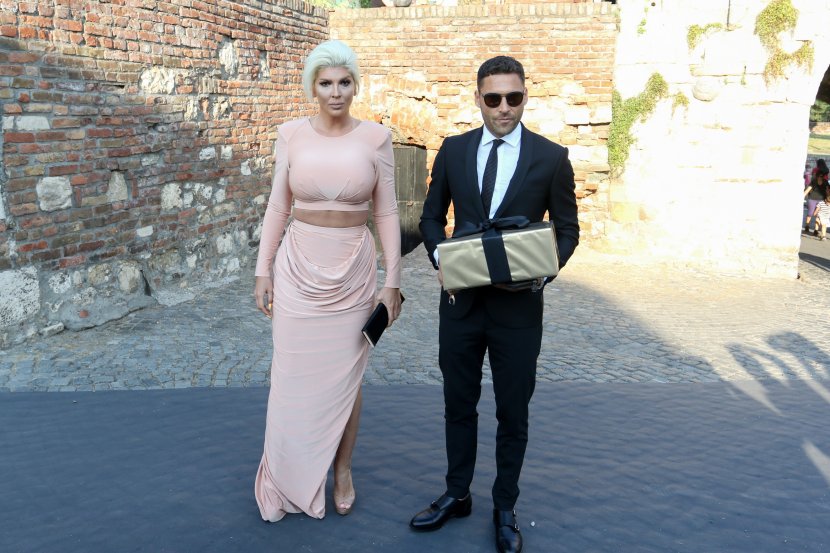 Српската пејачка со нејзиниот сопруг, фудбалерот на Фенербахче, се појавија во елегантен стајлинг. Карлеуша носела розев фустан, а Душко бил облечен во одело.
