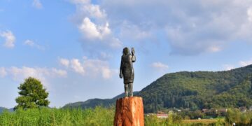 Полицијата во Словенија истражува исчезнување на бронзена статуа на Меланија Трамп, која ја замени дрвената статуа уништена во пожар во 2020 година, објави „Гардијан“. Бронзената статуа, прикажана во природна големина, беше поставена на трупец од дрво на приватна нива во нејзиниот роден град Севница.