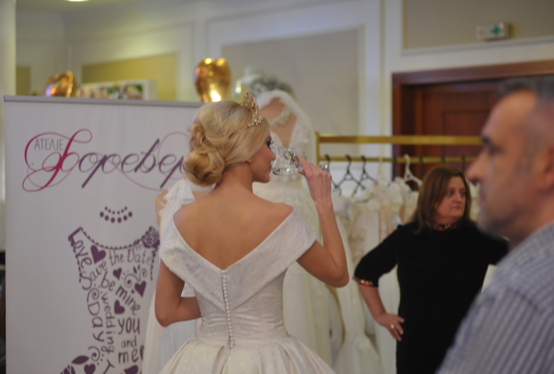 На саемот кој се одржа во хотелот Александар Палас продефилираа македонски дами и џентлмени во венчаници и костуми, а целиот амбиент беше во стилот на свадбена Дизниева бајка.