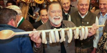 Шварценегер беше одлично расположен, дегустираше колбаси и се дружеше со локалното население.