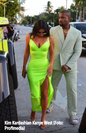 Сопругата Ким Кардашијан се одлучи за флуоресцентен фустан со длабок отвор.