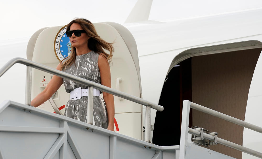 Првата дама на САД, Меланија Трамп, во сив фустан замина на патување во Нешвил, Тенеси, за да ја промовира својата кампања Be Best.