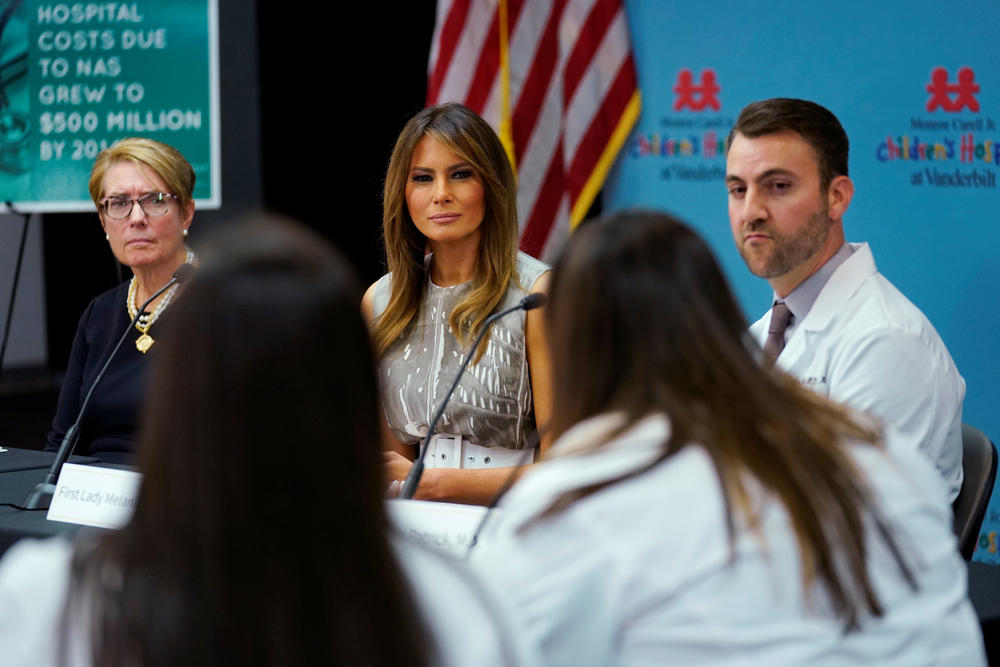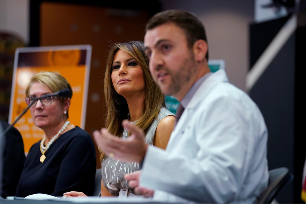 Меланија во текот на посетата на Тенеси беше и во детската болница, а повеќето од времето го мина дружејќи се со децата.