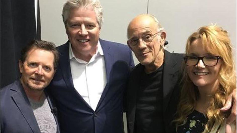 На настанот се појави главниот јунак Мајкл Џеј Фокс (57). Покрај него, присуствуваа и Кристофер Лојд (79) и Томас Вилсон (59).