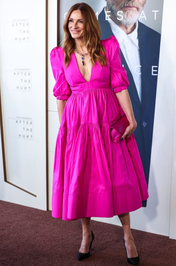 Џулија Робертс неодамна присуствуваше на премиерата на филмот „After the Hunt“ во Лос Анџелес, каде што блескаше во розов фустан од брендот „Greta Constantine“.