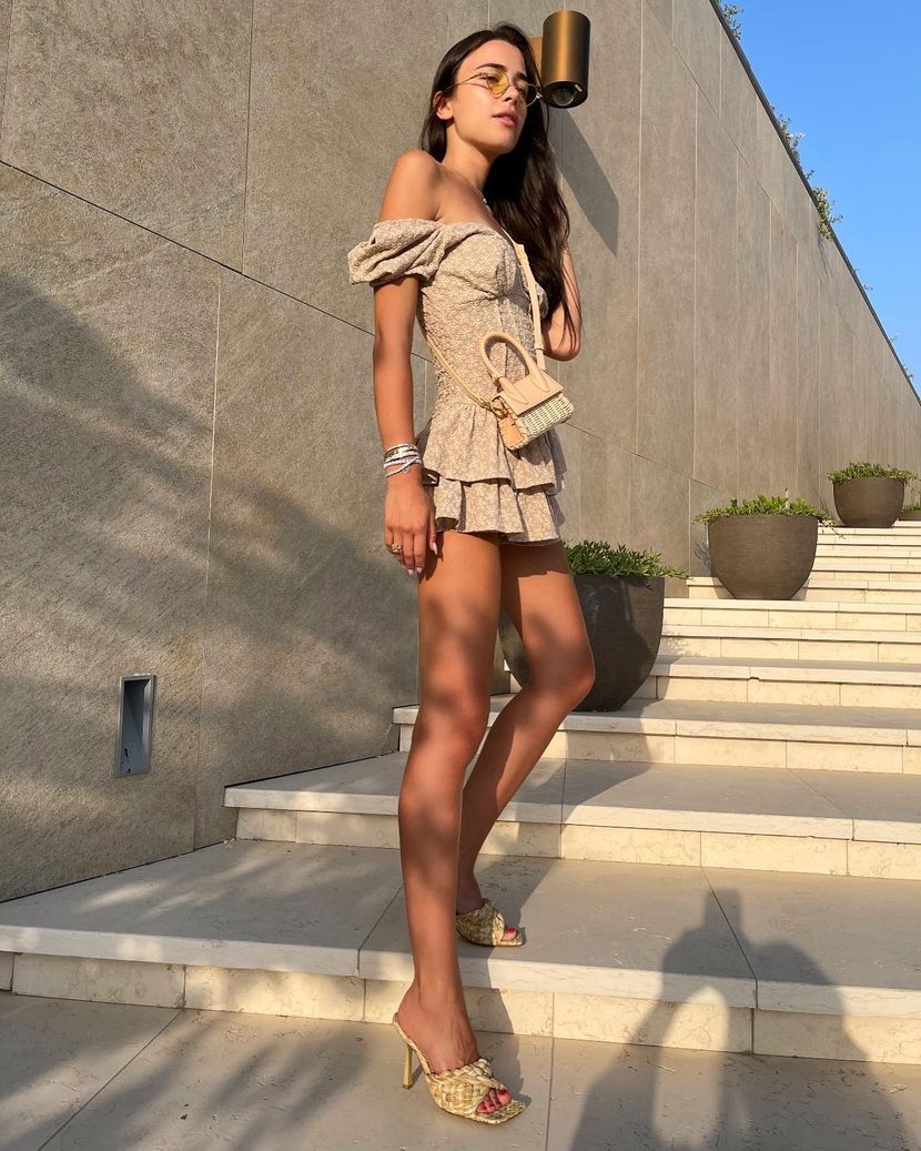 Глумецот од плажа е виден како излегува од ноќен клуб и шета по марината со Марија, облечен во сина кошула и бејзбол капа. Марија носела црн фустан со деколте и сребрени штикли. Друштво им правел глумецот Тоби Мегваер.