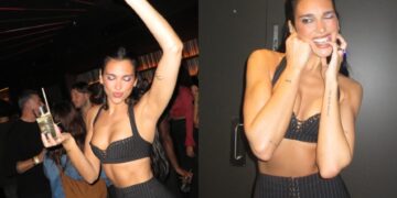 За ноќно излегување со пријателите, Дуа избра импресивна црна облека која ја истакна нејзината витка линија. Таа носеше црн топ со бели риги и тесно здолниште во ист дезен, а во преден план беше нејзината тенка половина и тетоважите на рацете.