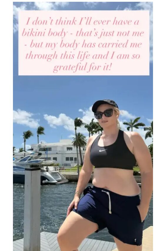 Во нејзината објава на Инстаграм од 31 март, актерката сподели фотографија во спортски маица и шорцеви со пораката: „Не мислам дека некогаш ќе имам тело за бикини – тоа едноставно не сум јас“. Таа додаде: „Но, моето тело ме носеше низ животот и за тоа сум толку благодарна!“