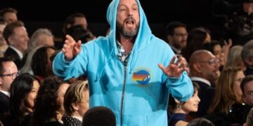 Додека ѕвездите како Тимоти Шаламе, Адриен Броди и Колман Доминго пристигнуваа на најважната холивудска вечер во нивните најстилски комбинации, Адам Сендлер се појави во целосно опуштена облека – облечен во едноставен дуксер од брендот Venice Sweats.