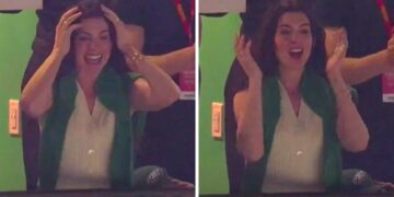 Таа беше весела и насмеана и викаше од трибините. Видеото ги воодушеви обожавателите на актерката.