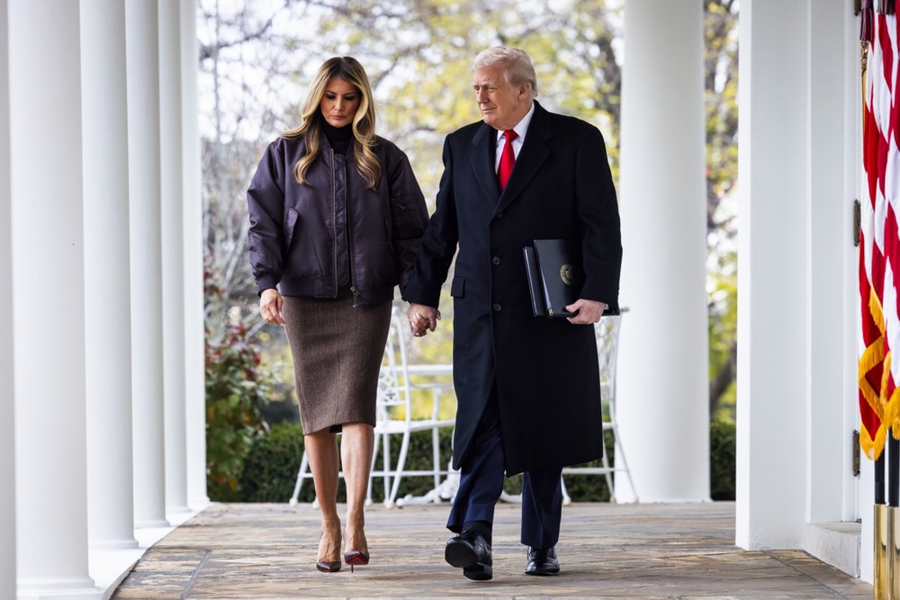 Американскиот претседател Доналд Трамп и првата дама Меланија Трамп се појавија во Белата куќа за традиционалното помилување мисирки, а во таа прилика модното издание на Меланија повторно беше во центарот на вниманието.