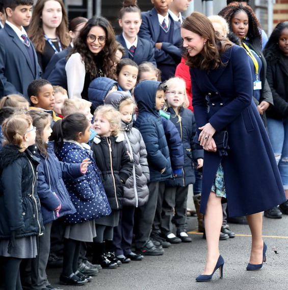 Војвотката Кетрин Мидлтон денеска беше во посета на бесплатното училиште Reach Academy, каде што се појави во сина комбинација, која вклучуваше цветен фустан и палто од брендот Hobbs.