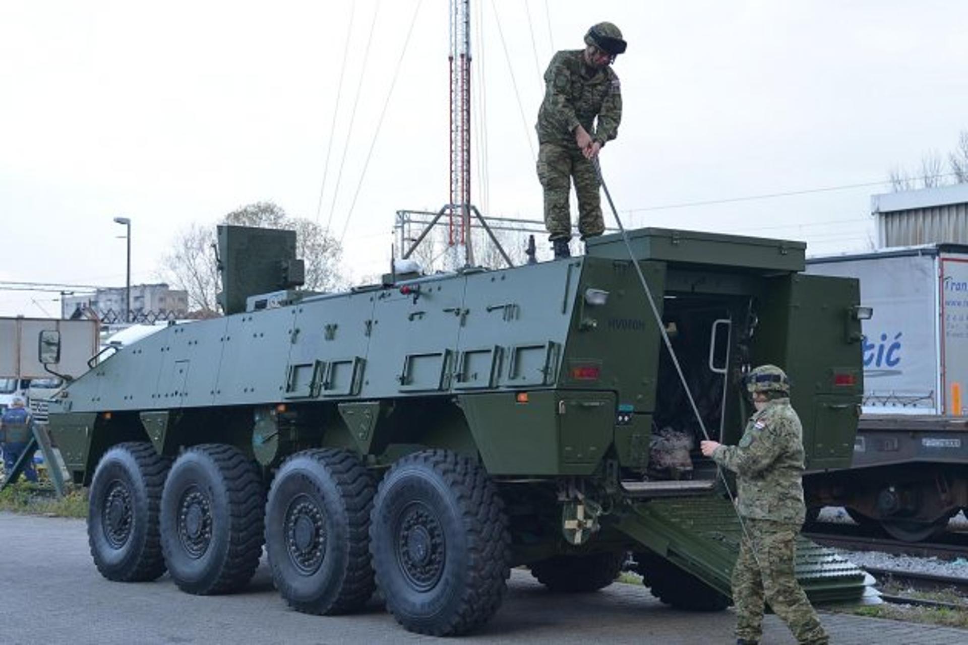 „Со организиран транспорт на Хрватската железница, кон Литванија тргнаа 13 борбени оклопни возила ‘Patria 8×8 AMV’, заедно со едно борбено санитетско оклопно возило ‘Patria 8×8 AMV’, едно од борбените оклопни возила за извлекување ‘Patria 8×8 АMV’, четири товарни камиони, еден теренски камион, теренско борбено возило, електроагрегат, вагон наменет за спиење, две теренски моторни возила и 15 контејнери“, соопштија од службата за односи со јавноста на Министерството за одбрана на Хрватска.