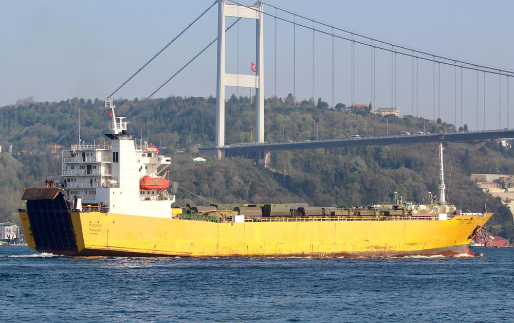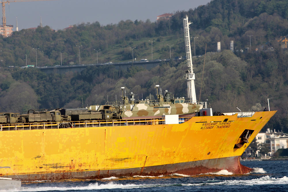 Исто така снимен е и жолт „РоРо Александар Ткаченко“, како плови кон Тартус, кој носел брзи патролни чамци, конструкција за монтажен мост и неколку камиони.