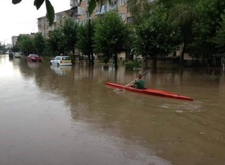 Прилепчанец принуден со кајак да стигне до посакуваната дестинација. Автомобилите исто така беа под вода.