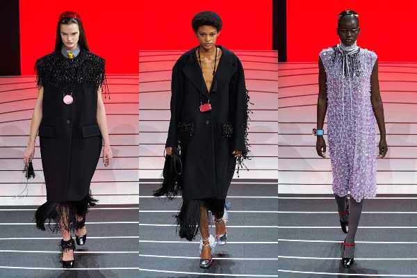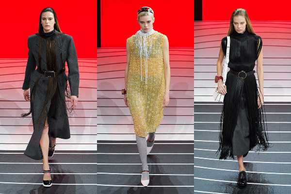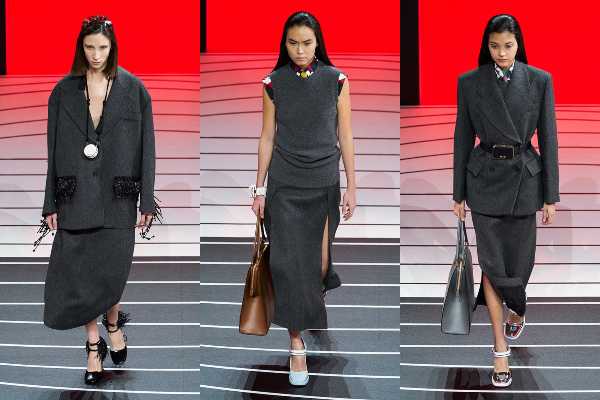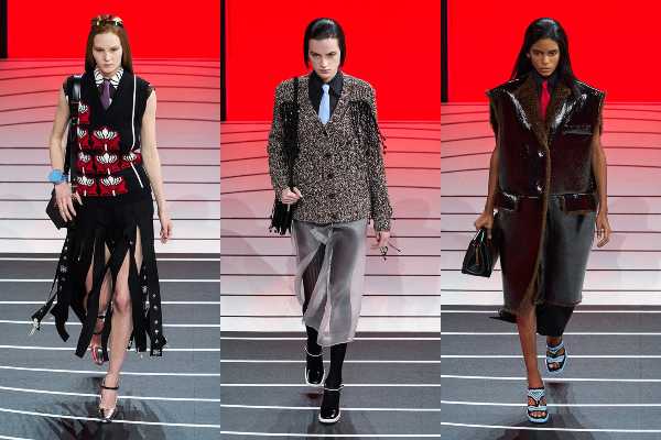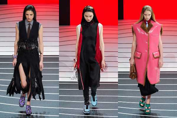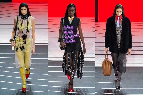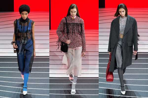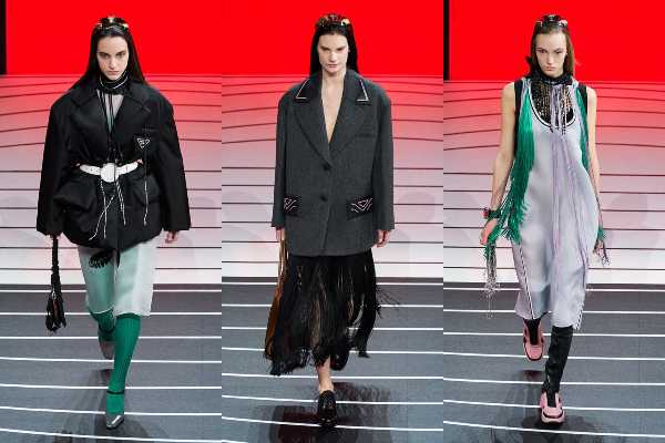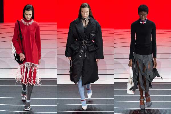 „Прада“ тргнува кон рафинирана игра на цитати во кои хипи естетиците се среќаваат со глауморот од 1920-тите,а спортскиот универзум дозволува да биде контаминиран со деликатни транспаренти. Неговото мото е „размислување околу снагата на жените, нагласување на вродениот авторитет кој постои во оној кој е вистнска жена“.