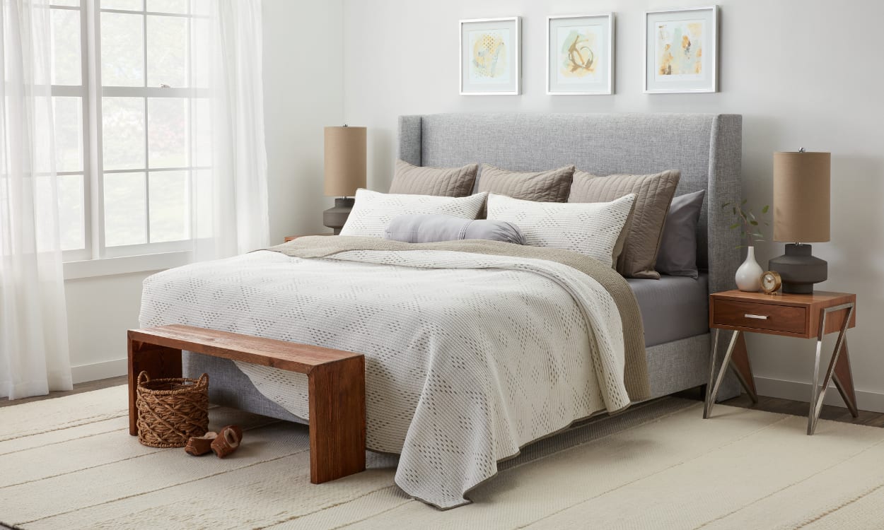 За постигнување на освежен изглед на спалната соба не постои потреба од купување на нов мебел, постелини или за промена на распоредот на мебелот, иако сѐ од наведеното можете да го направите. Сѐ што е потребно за да го освежите изгледот на спалната соба се украсните перничиња или нови навлаки за перниците.