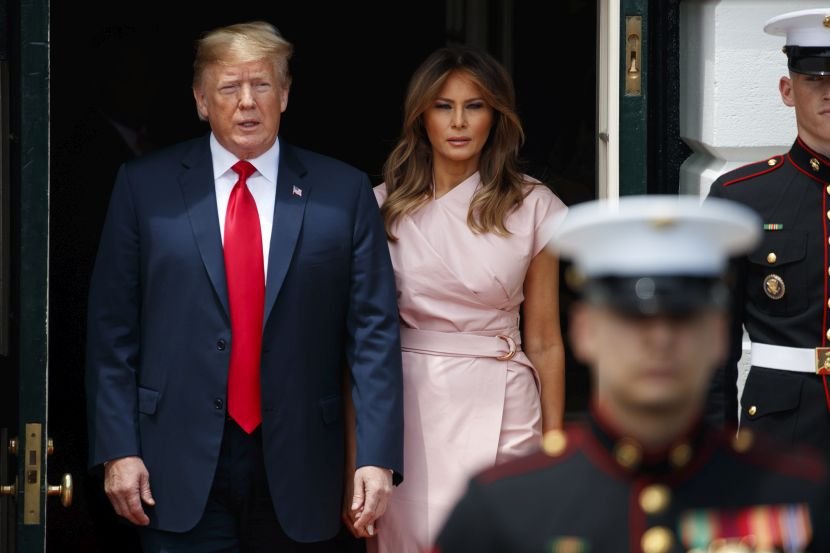 Таткото на Меланија носел темно сако и сина вратоврска. Нејзината мајка носела светло розов костим и бела кошула.