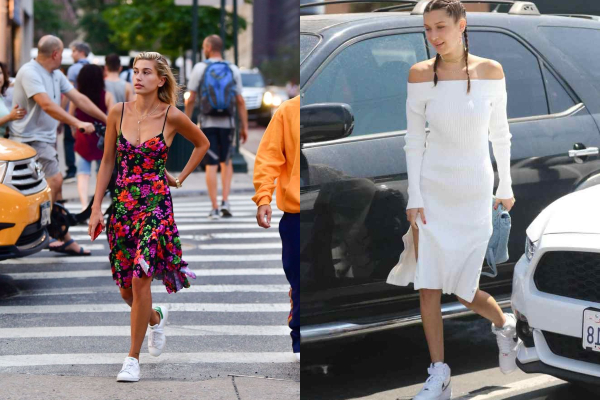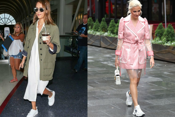 Необичните стајлинзи – спој на елегантното и спортското, ги освоија срцата на сите девојки. Изгледа дека фустанот со патики успеа да го испроба секоја славна девојка.