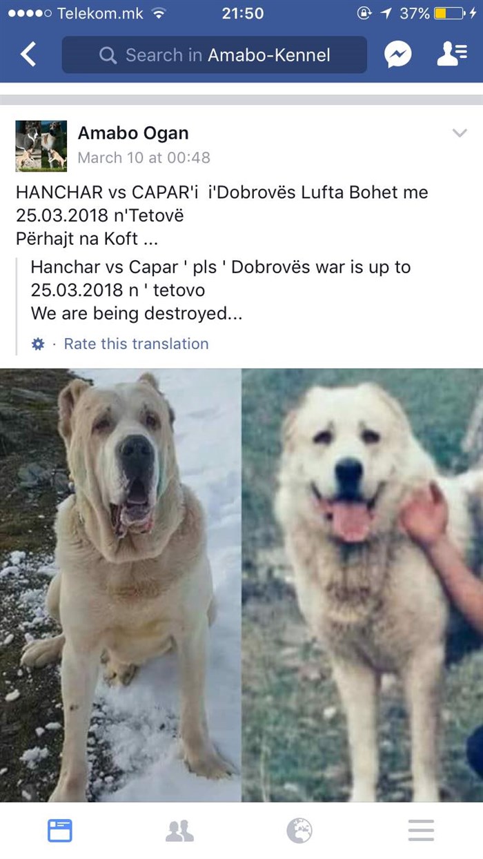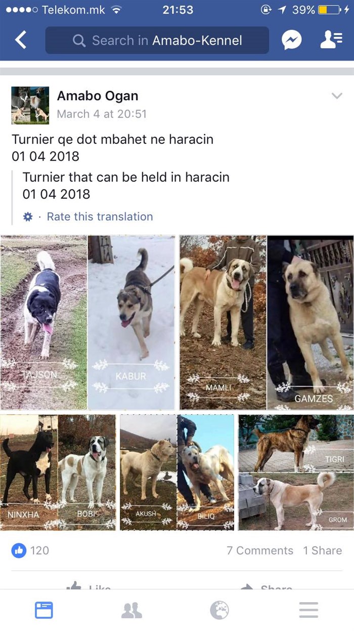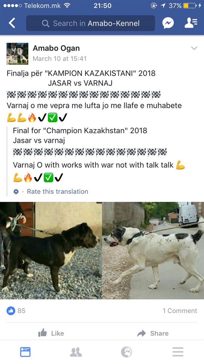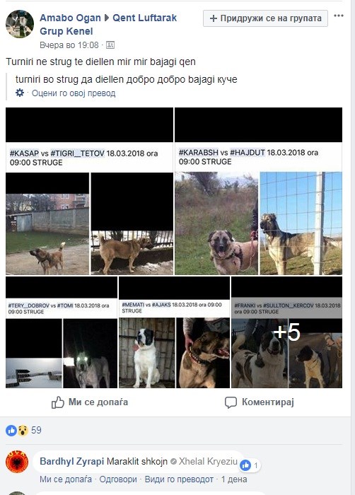 На фејсбук-страницата Amabo-Kennel, која е од затворен карактер, можеле да се забележат борби со кучиња, но и покрај реакциите на месните жители во полицијата и до градоначалникот Арбен Таравари, реакција од надлежните засега нема.