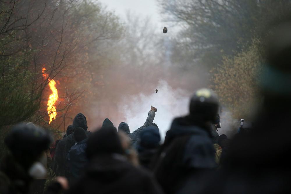 Полицијата фрла солзавец и шок-бомби, додека активистите фрлале со камења.