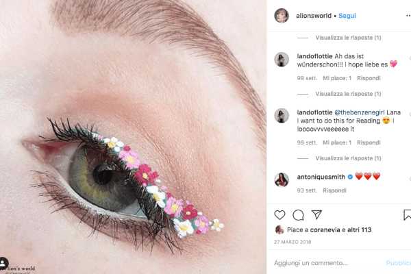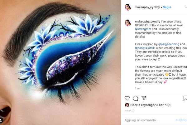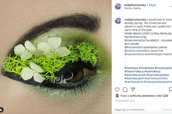 Еден од најромантичните мејкап трендови за 2020 година е цветен ајлајнер. Ливчињата, цвеќе и мали гранки нацертани врз капаците се оригинален мејкап. Се цртаат на аголот од вашето око. Затоа, искористете го тоа што седите дома, имајте малку трпение и со микро четкички почнете да цртате на кожата.