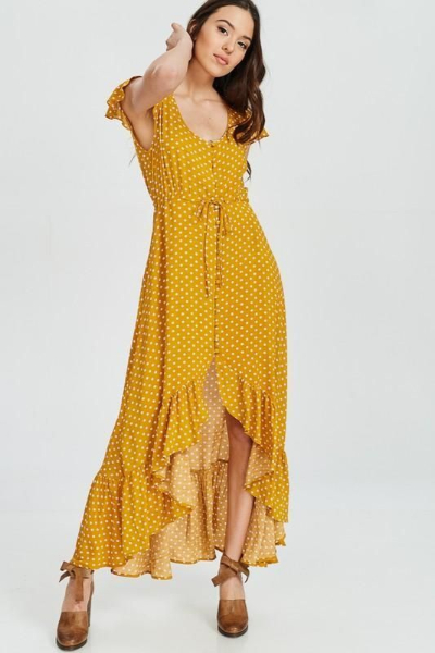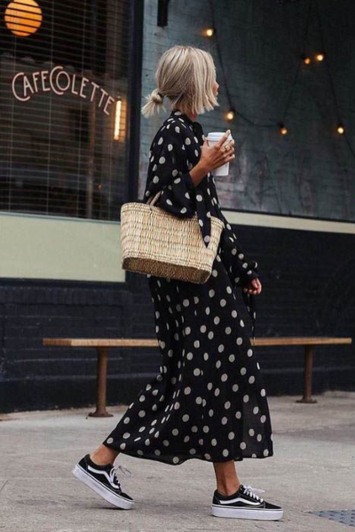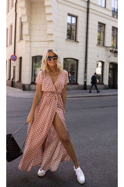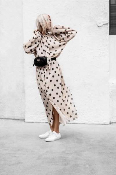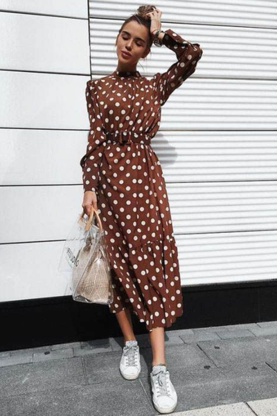 Како на најтоплото годишно време полека му се приближува крајот, така е време да смислиме одредени комбинации кои се обележуваат овој период. Најдобро парче во кое можете да инвестирате е всушност ваквиот модел на фустан – со точки. Без разлика дали ќе се одлучите за мини, миди или макси должина, знајте дека нема да погрешите доколку го имате овој симпатичен дезен преку целиот материјал. Овој фустан автоматски прави да изгледате помлади, но и да се чувствувате повесели затоа што ваквиот модел едноставно предизвикува позитивни чувства.