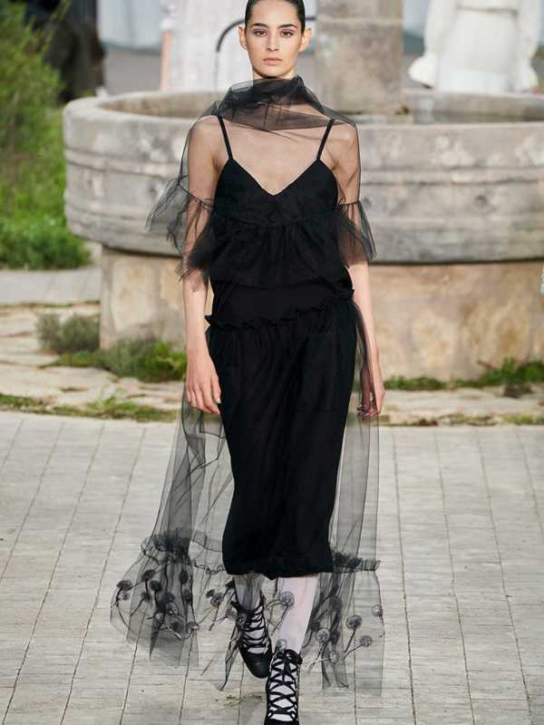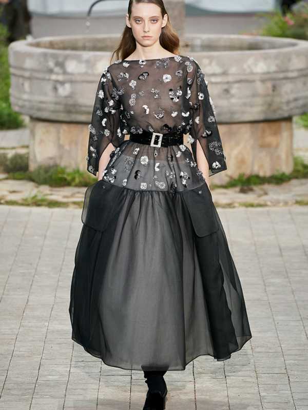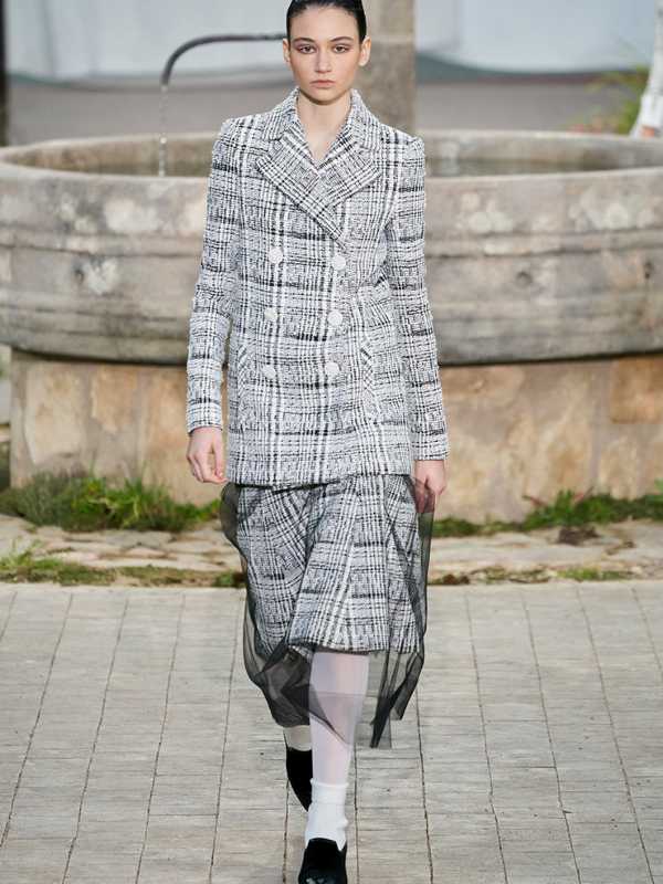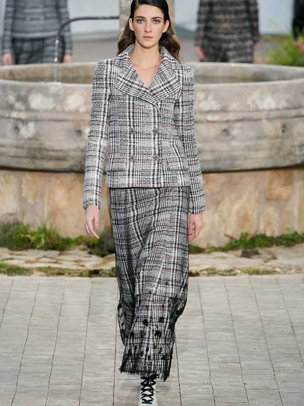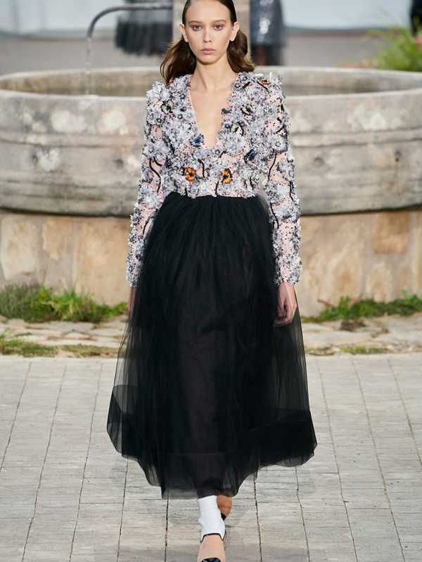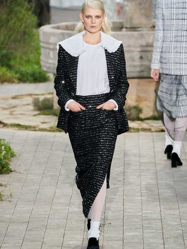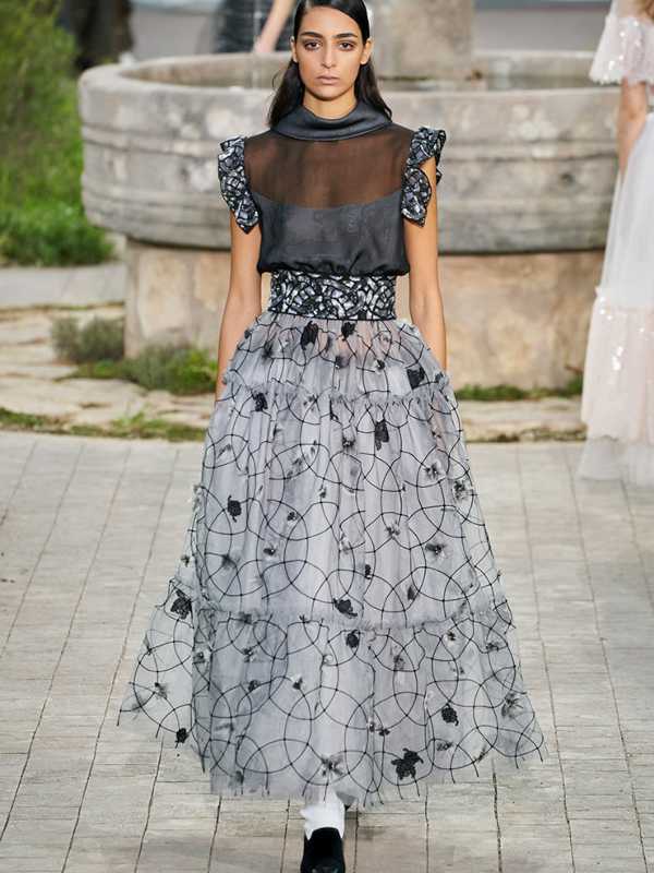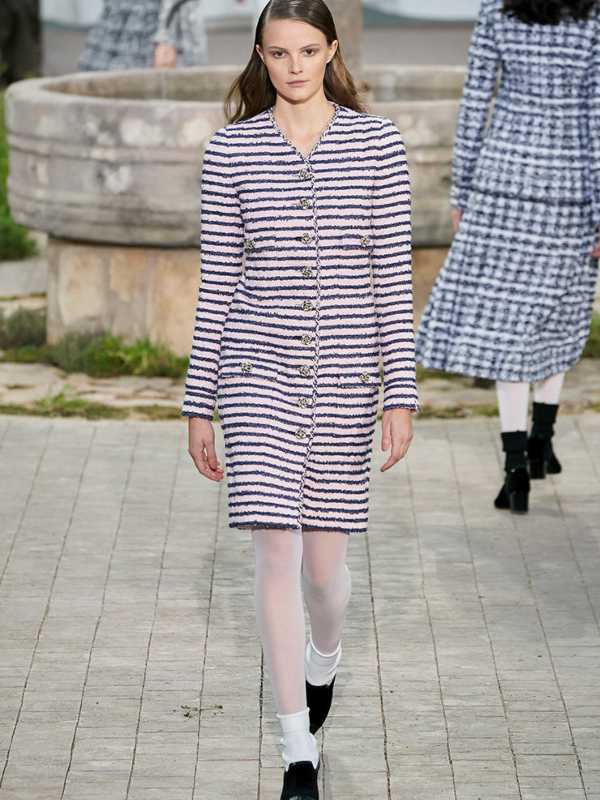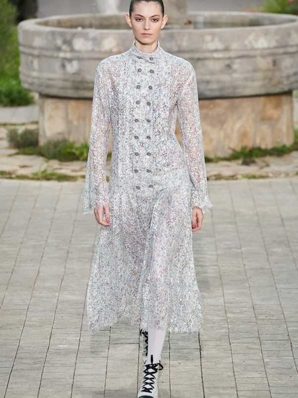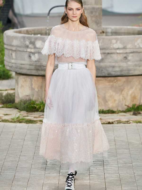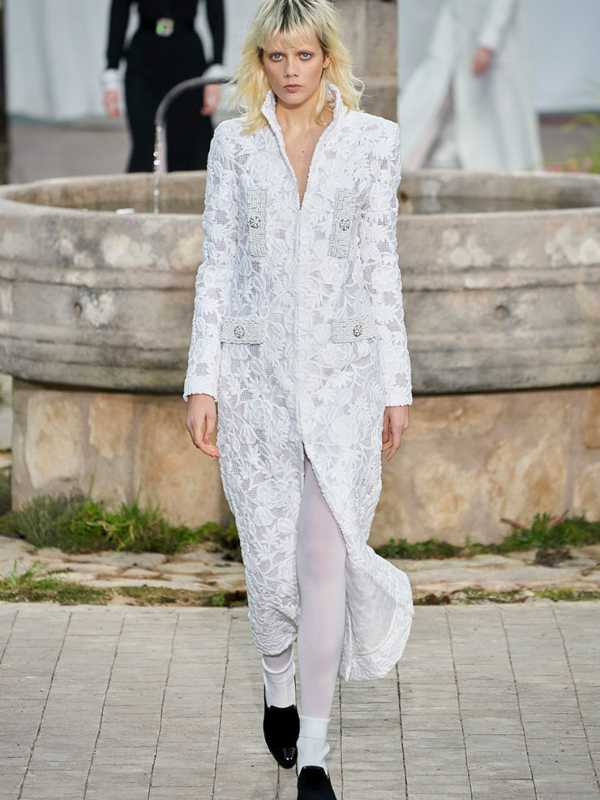 Колекцијата ни открива нови трендови – насочете се на струкот, светлите нијанси, цветниот вез, чипката, макси џинсот, проѕирните ткаенини и чорапи. Колекцијата е инспирирана од архивите на куќата и црпи инспирација од сиропиталиштето каде Габриела Шанел ги поминала деновите од детството.