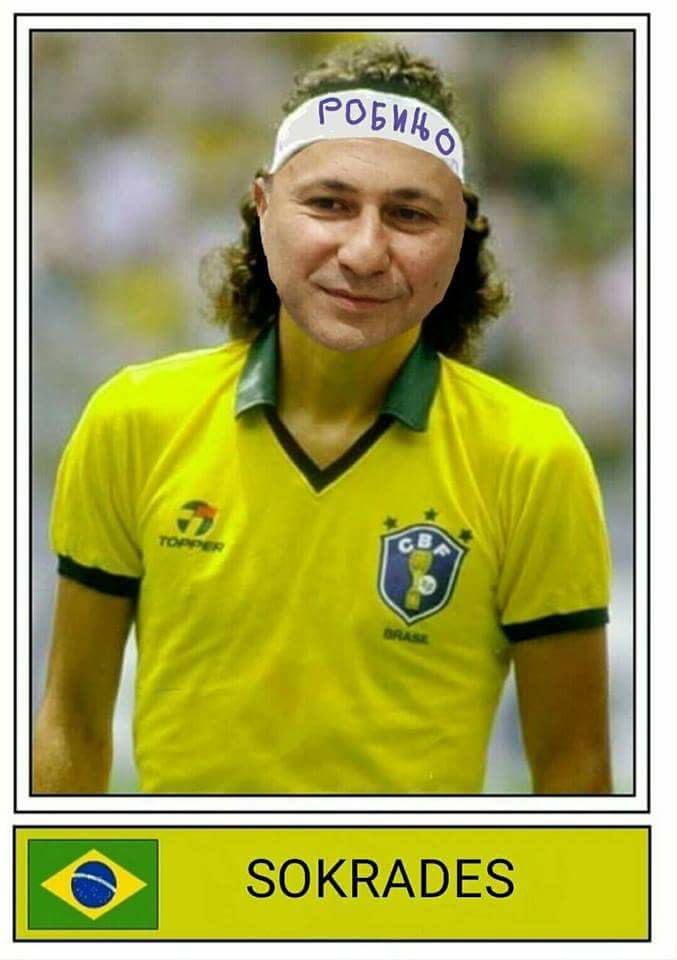 Никола Груевски во дрес на Бразил, со стегач на главата, на кој пишува Робињо, им стана инспирација на твитреџиите во пресрет на мундијалот.