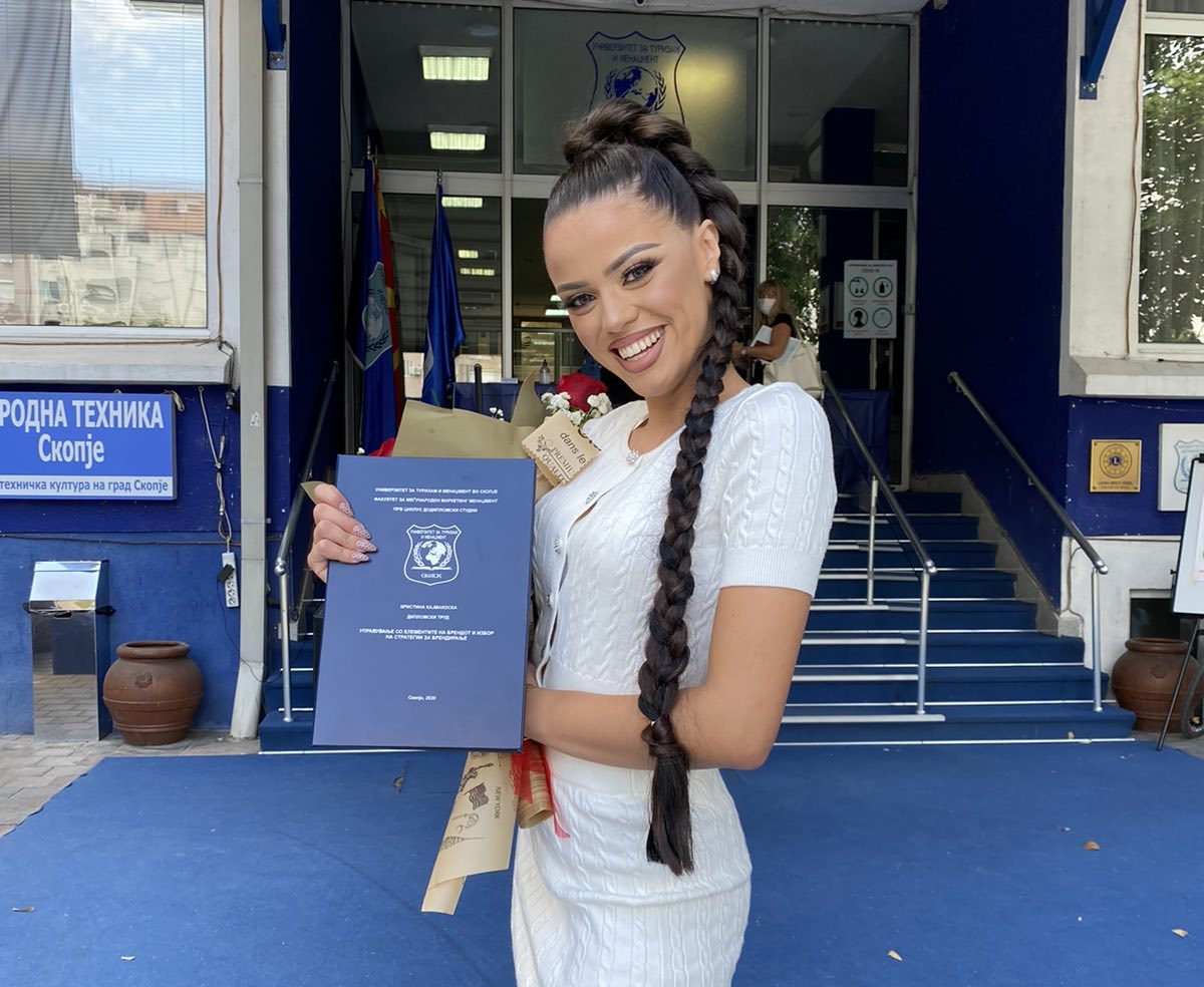 Манекенката Кристина Димитријевска денеска дипломираше меѓународен маркетинг и менаџмент на Универзитетот за туризам и менаџмент во Скопје. Таа студираше три години на овој факултет, па во разговор за „Репортер“ ни откри дека сега ѝ е време за нова и посериозна професија.