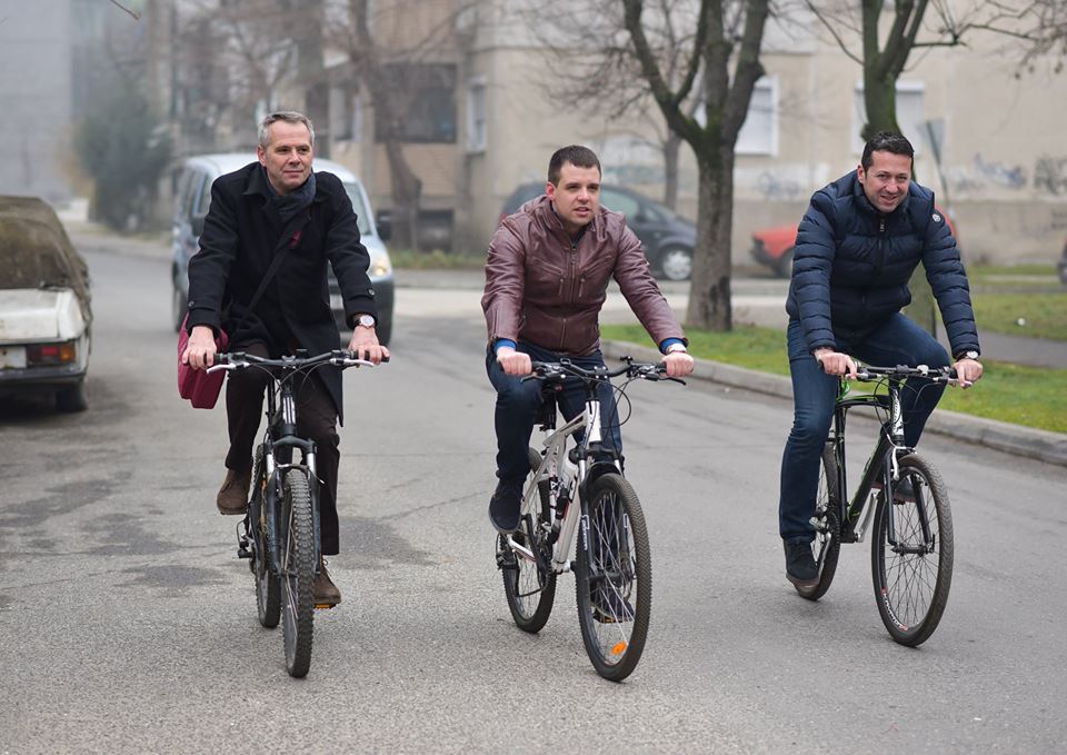 Богоев, фотографиите ги објави на својот фејсбук профил, каде напиша дека се приклучил на акцијата „Winter Bike To Work Day – Skopje“.