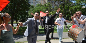 Со развиорено знаме и тапани, познатиот јутјубер Стефан Лазаров тргна по невестата Марта, со која денес се жени. Се врти почетничко оро во населбата Аеродром. Тој и Марта беа долго во љубов пред да се решат за брак.