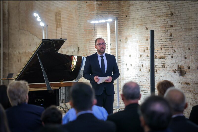 Во своето поздравно обраќање пред концертот, министерот се осврна на пијанистот Симон Трпчески и квинтетот „Македонисимо“, на кој беа изведени дела од Едвард Григ, Петар Илич Чајковски и македонскиот композитор Панде Шахов.