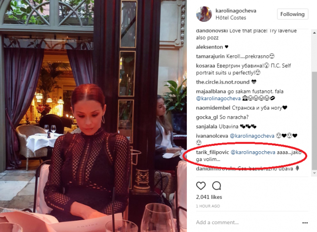 На една од фотографиите што ги прикачи поп принцезата носи тесен црн фустан со дупчиња. Сексапилот со кој зрачи Каролина предизвика лавина од реакции, а на овој секси фустан не остана имун ниту шармантниот хрватски водител Тарик Филиповиќ кој и прокоментира: