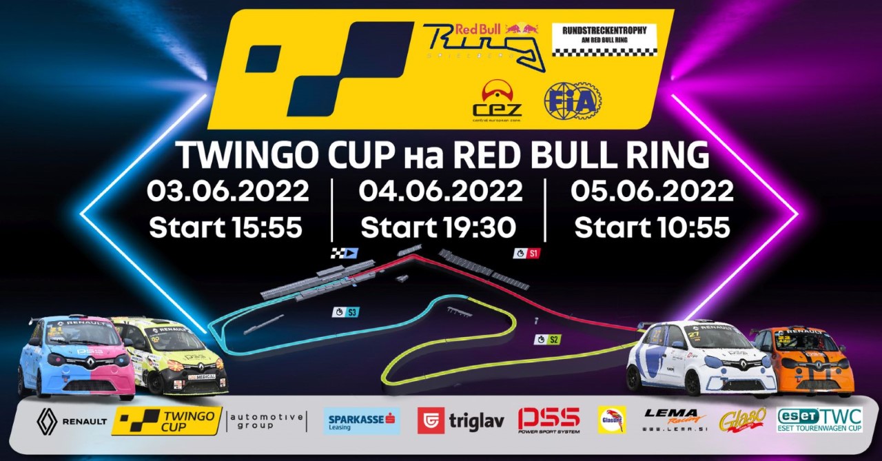 Познатата патека Ред Бул Ринг во Австрија викендов ќе биде домаќин на втората трка од првенството на Twingo Cup тркачка серија во која настапуваат и деветмина македонски возачи.