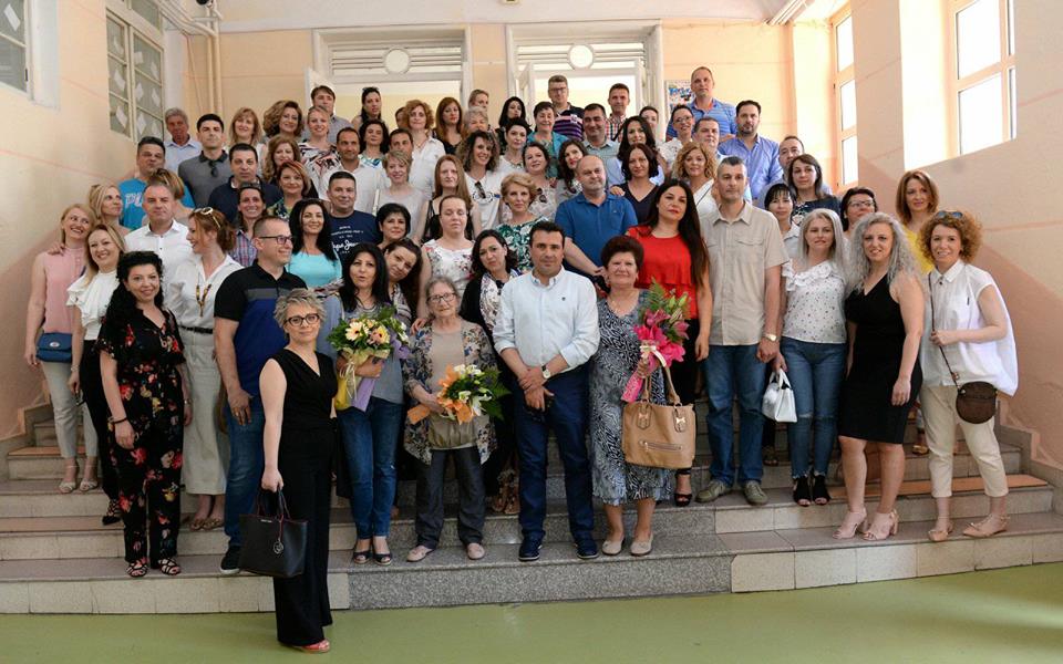 По завршувањето на класниот час, премиерот Заев со своите соученици и класната раководителка, дружењето го продолжија во едно од струмичките кафулиња.