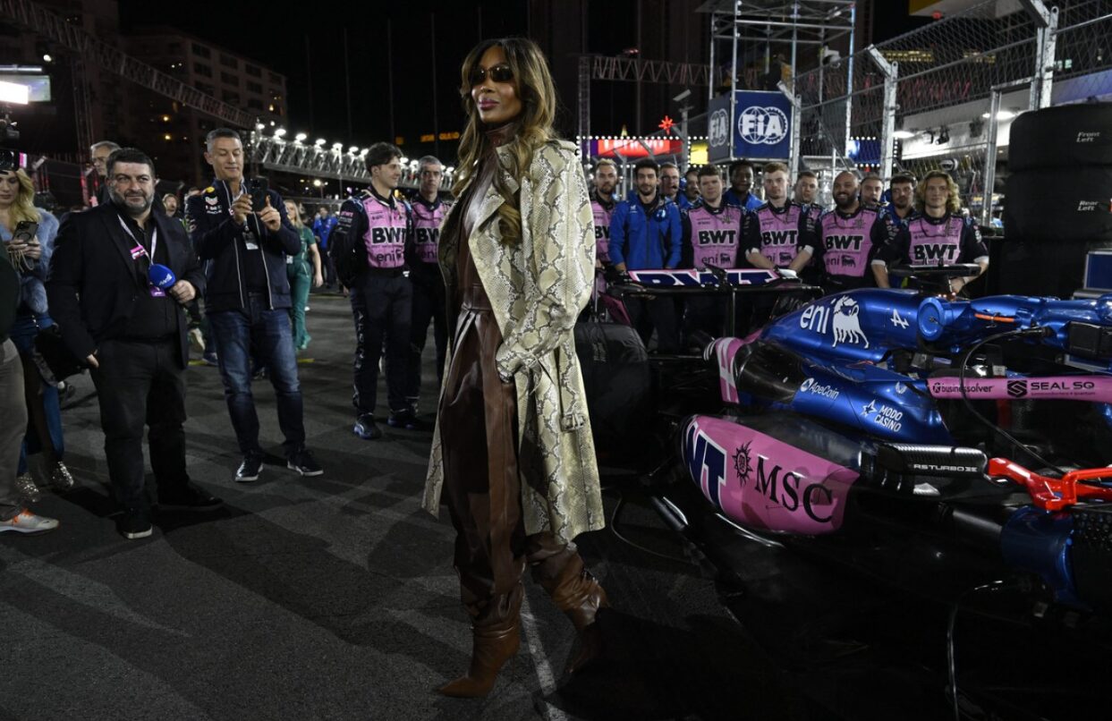 Прво, имавме можност да го видиме бомбастичното деколте на познатата Бијонсе, а Наоми Кемпбел не нè изненади помалку. И додека поп-ѕвездата носеше комбинезон со мотиви од трката на Формула 1, легендарниот модел од 90-тите изгледаше како штотуку да излегла од модната писта.