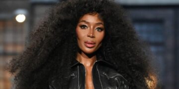 Најпознатиот супермодел на светот, Наоми Кембел, прошета по пистата за ревијата на DSquared2 на модната недела во Милано. 54-годишната манекенка на пистата се појави во црно кожено боди и високи чизми.