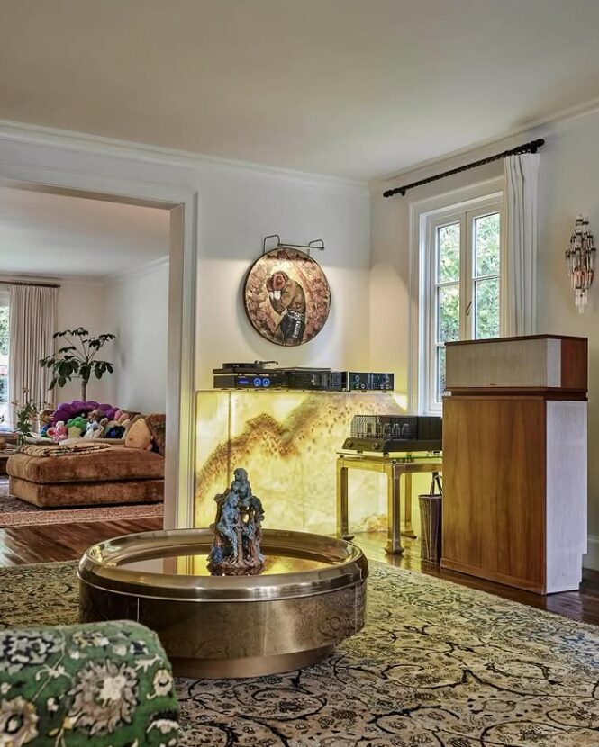 Како доказ, доволно е да се погледне аголот на трпезаријата на Бени Бланко. Продукцискиот тим од bonVIVANT Interiors претвори мал простор во впечатлива „прослава на дизајнот“.