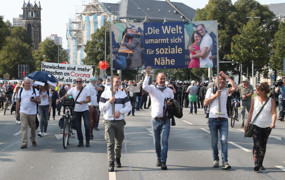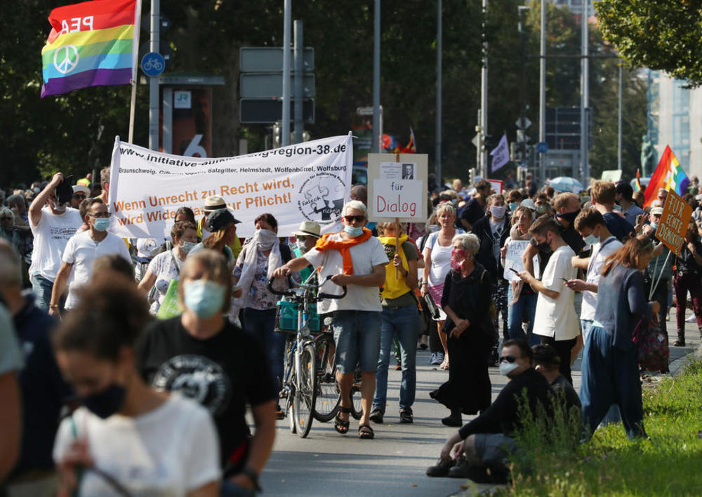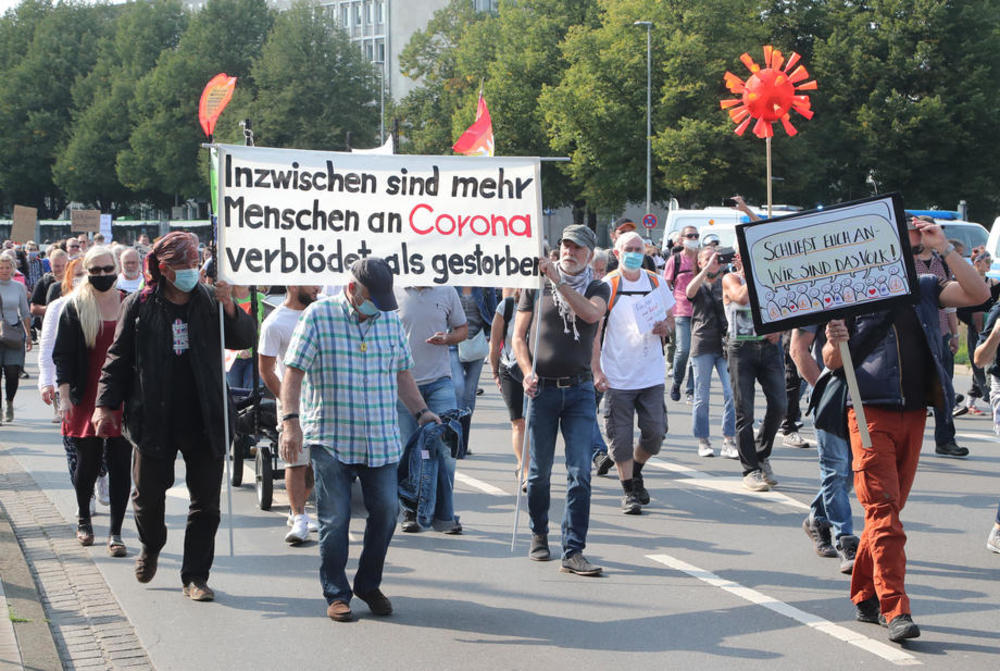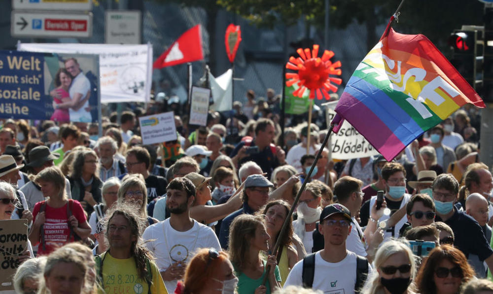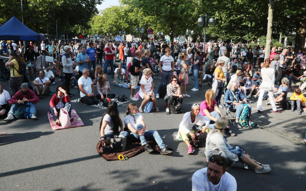 Во Германија се одржуваат масовни протести против владините мерки за заштита од коронавирусот. Многумина сметаат дека станува збор за лажна пандемија и ја обвинија владата за намерно ширење на страв од лажна пандемија и лишење на човековите права.