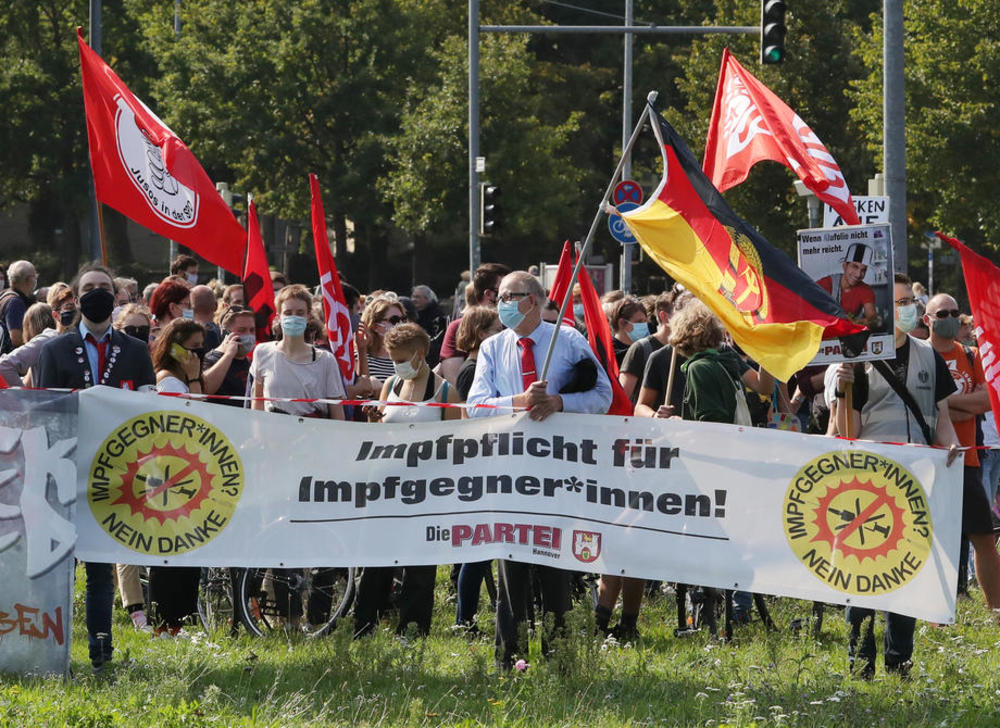 Противниците на мерките и оние кои се против вакцинација, носеа маици на себе на кои пишувало „Против задолжителната вакцинација, државно насилство, нечесни медиуми и предавници на народот“. Помалите протести, со околу илјада учесници беа одржани и во Хановер и Висбаден.